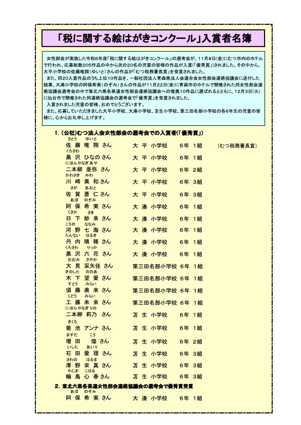 - 『 令和6年絵はがきコンクール 』を更新しています
